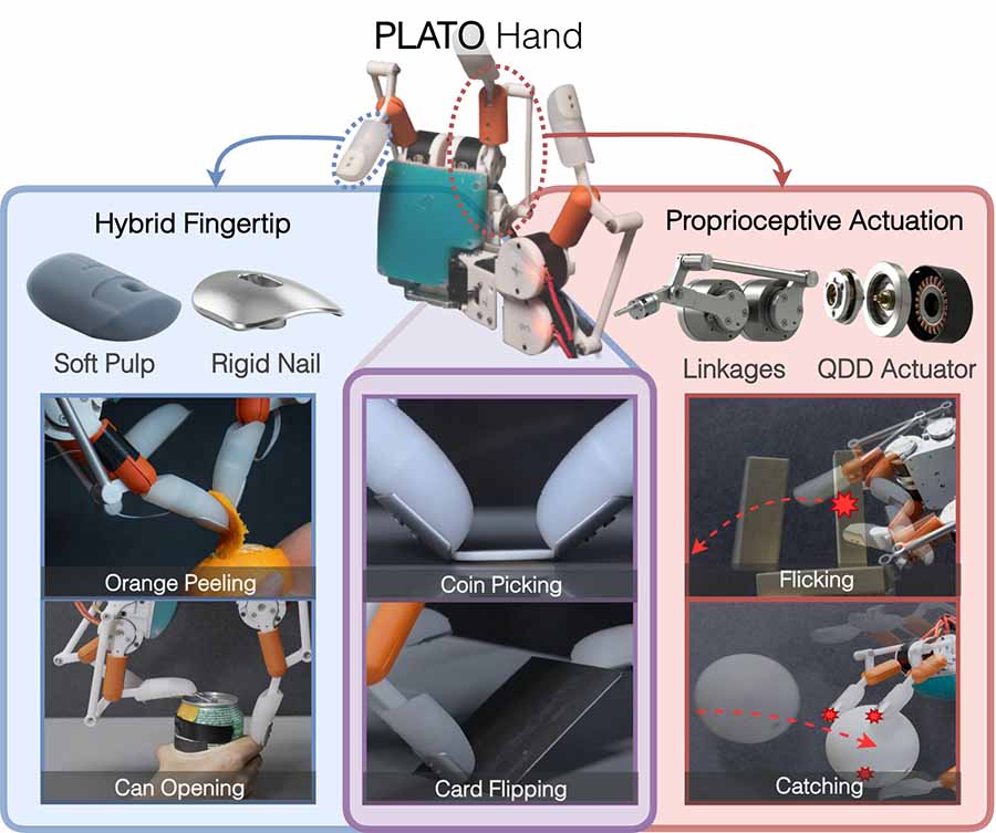 TL;DR: Researchers from The University of Texas at Austin and Sony Group Corporation unveiled the PLATO Hand, a robotic hand that embeds a rigid fingernail within a soft fingertip to shape contact forces. The nail shifts deformation to the contact point instead of the whole finger, boosting pinching stability (up to 78%), increasing force sensitivity (up to +20 dB), and enabling thin-object tasks like paper singulation and card picking. The work signals smarter material design can drive a new class of physically embodied robotic dexterity.